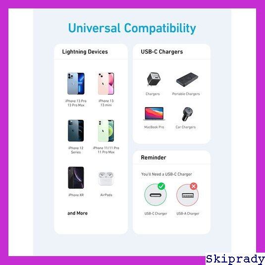 【本日限定価格】 Anker ブルーホワイト 1.8m 各種対応 第2世代 SE / 12 / Pro 13 / 13 iPhone PD対応 USB MFi認証 ライトニングケーブル & USB-C 高耐久ナイロン 46 | skiprady