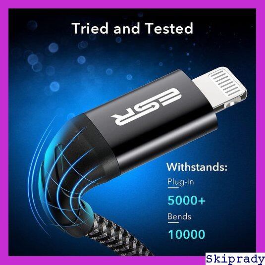 【本日限定価格】 ESR ブラック Type-Cケーブル Max/XS/X/8対応 Max/11/XR/XS Pro Pro/12 mini/12 Max/12/12 Pro mini/13 Pro/13 13/13 iPhone PD急速充電ケーブル 編組ナイロン MFi認証取得 1m 2本入り Lightningケーブル to C USB 73 | skiprady