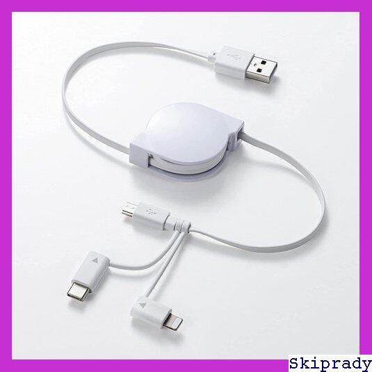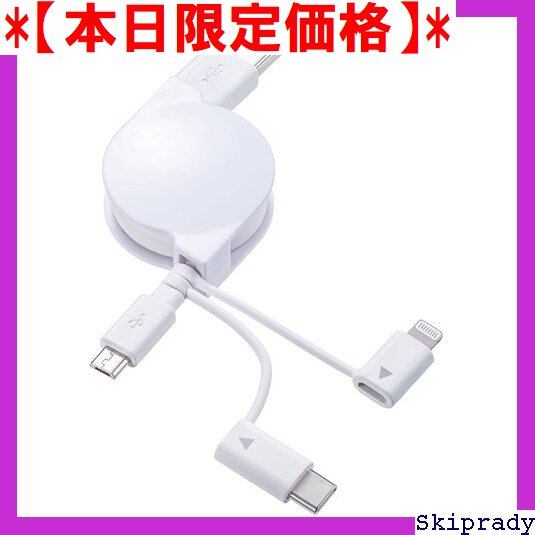 ●2つの変換アダプタ付きで、ライトニングケーブル、USB2.0 Type-Cケーブル、microUSBケーブルとして使用できる、巻き取り式USBケーブルです。●ケーブル1本で、3種類のコネクタを搭載した機器の充電、データ通信をする事ができます。 ●ケーブルは最長0.8mの巻き取り式で、お好みの長さに調整して使用できます。●ライトニングコネクタは、Apple社 MFi認証(Made For iPhone)取得品です。●iPhone・iPad、Type-Cコネクタ、microUSBコネクタを搭載した各種スマートフォンやタブレットなどとパソコンを接続して、データの通信や充電ができます。※充電、データ通信に対応した機器に限ります。●iPhone・iPad、各種スマートフォンやタブレットとUSB-ACアダプタやUSBカーチャージャーなどを接続して充電ができます。■カラー:ホワイト■コネクタ形状:ケーブル/USB Aオス-microUSB Bオスアダプタ/ライトニングオス-microUSB Bメス、Type-Cオス-microUSB Bメス■サイズ:筐体部分/約W38.7×D41×H15.7mm■重量:約29g■ケーブル長:約0.8m(790mm±30mm)コネクタカバー含む(長さ4段階固定)■ケーブル径:約4.4×1.5mm(フラットケーブル)■ケーブル材質:TPE(線材被覆)■規格:APPLE MFI認証取得品