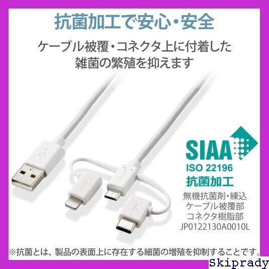 【本日限定価格】 エレコム MPA-MAMBLAD10WH ホワイト 1m Apple認証品 対応 Android / 第2世代 SE / 12 / 13 iPhone 形状記憶ケーブル C+Lightning microUSB+Type- 3in1 USBケーブル スマホ用 103 | skiprady