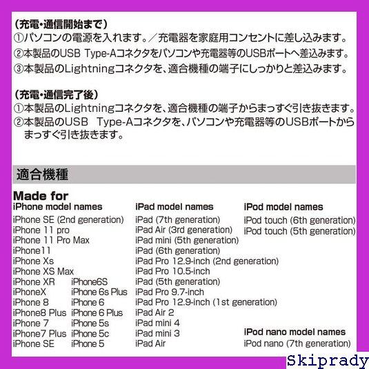 ●製品はiPhone、iPod、iPadに対応した充電・通信ケーブル(USB Type-A to Lightning)です ●安心してお使いいただけるApple社MFi認証品です ●USBポートを搭載したパソコン、AC充電器やDC充電器等から充電することが可能です ●本製品をパソコンに接続する事により、機器とパソコン間でのデータのやりとりができます ●カラーはブラック