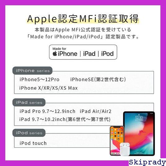 商品の説明 airy510シリーズ 柔らかくて断線に強い Type-C to Lightningケーブル安心の日本メーカーだからサポート・も万全 柔らかくて断線に強い新素材を使用 10万回の折り曲げ試験をクリア USB Power Delivery対応で急速充電が可能 MFi認証で安心 ケーブルバンド付きで持ち運びにも便利 安心の 製品仕様 対応機種:iPhone 5以降のiPhoneまたはLightningを搭載したiPadやiPod touch※充電器側のコネクタはType-C(USB-C)になります。別途AC充電器(Type-Cポート)が必要です。 コネクタ形状:USB Type-C (オス) - Lightning (オス) 規格:最大60W (20V/3A) 充電対応※USB Power Deliveryをご利用になるには接続する機器がUSB Power Delivery対応である必要があります。※充電環境によって供給される電流値は異なります。 重量 (本体):約43g 転送速度:最大480Mbps 期間:※商品不良や商品についてのお問い合わせにつきましては、パッケージに記載の販売元(株式会社MOTTERU)までお問い合わせください。サポート 平日10時〜12時 13時〜18時まで(初期不良は商品到着後1週間以内にお問い合わせください) ご注意(免責)>必ずお読みください ※商品不良や商品についてのお問い合わせにつきましては、パッケージに記載の販売元(株式会社MOTTERU)までお問い合わせください。(初期不良は商品到着後1週間以内にお問い合わせください)