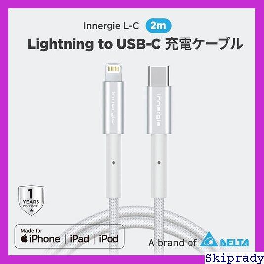 Innergie L-C 2m Lightning to USB-C 充電ケーブル | PD対応 Type C 急速充電 Mfi認証 480Mbps 高速データ転送対応 iPhone 13/ 13 Pro/ 12 / 12 Pro / 11 /11 pro/SE 各種対応 2m シルバー 257