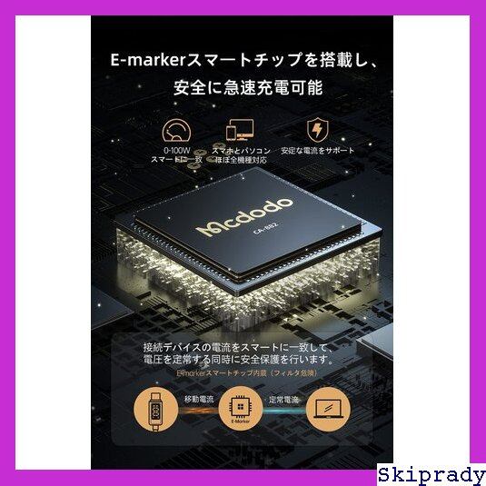 【100W急速充電】:E-markerスマートチップを搭載し、接続デバイスの電流をスマートに一致して、電圧を定常する同時に安全保護を行います。3重シールド保護で、外部ノイズの干渉から信号を保護することを実現しました。USB Power Delivery(PD)を対応し、最大100W (20V/5A)の出力で接続機器への急速充電が可能です。約1.8時間頃で、MacBook Proを満充電することが可能です。【高速データ転送】:USB2.0の規格であるし、最大480Mbpsの高速データ転送が可能です。大容量の写真・ファイル・音楽が数秒で転送完了します。(※上記のデータはMcdodo試験室からのものです。ご使用になるデバイスの性能などにより、供給される電流値が異なる場合があります)。