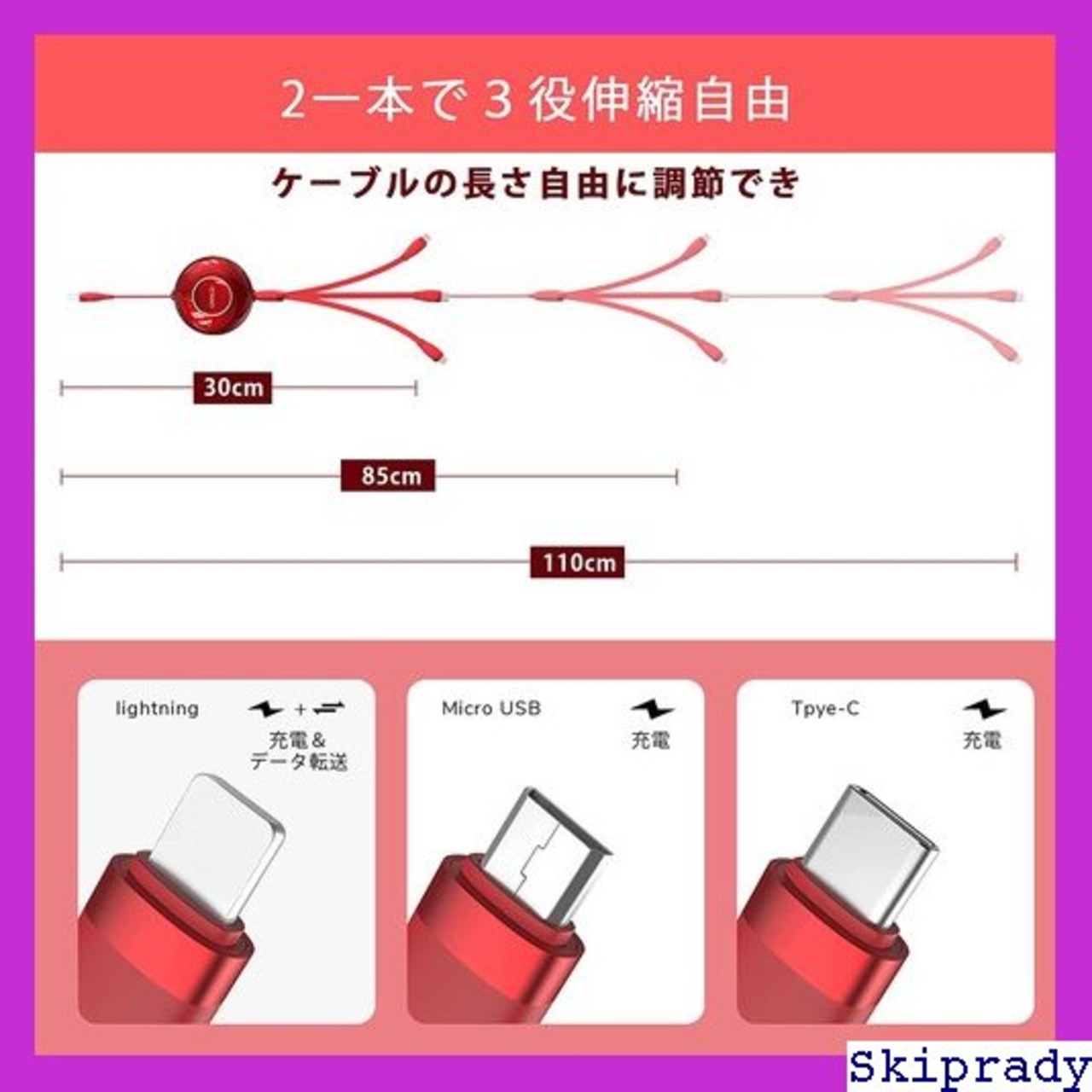 CAFELE 3in1 充電ケーブル 巻き取り 一方向ストレッチ片手操作ライドニングケーブル 3A急速充電最大15W 高速データ転送 iOSのみ /Micro/Type-c 便利110cmレット赤 318