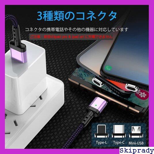 Yuanchen 3in1 USB マグネット 充電ケーブル 4本セット/9個磁気端子 磁石 磁気 急速充電データ転送ケーブル 0.5M+1.2M+1.2M+2M 防塵 着脱式 マグネット Android Type-c Micro usb USB充電用コード-パープル 337