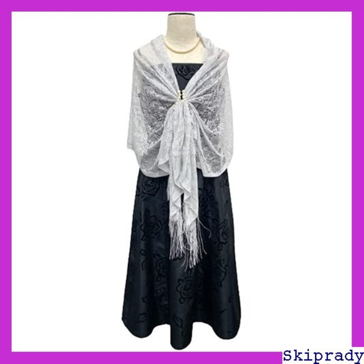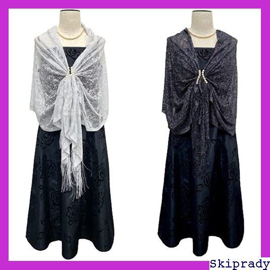 AJMstyle バラ 柄 レース ラメ ショール 結婚式 パーティー ストール パール 鍵ホック フリンジ 付 レディース フォーマル 292 28