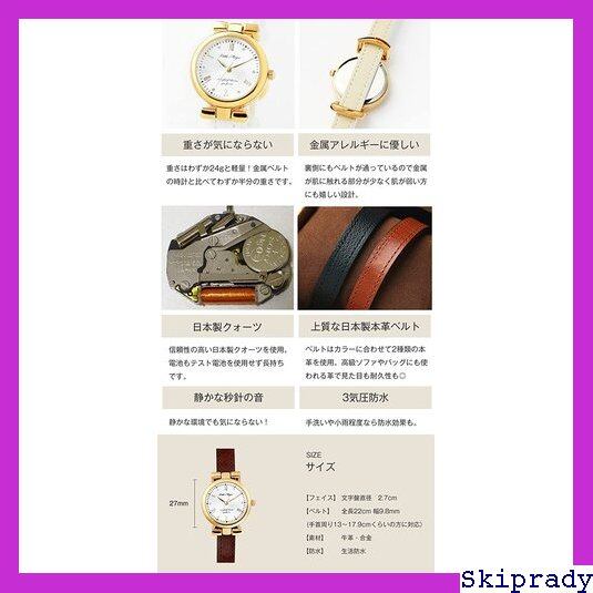【仕様】フェイス大きさ :(約)直径2.7cm(ベルト通しの金具部分まで3.4cm) 厚み0.84cm(ベルト通し込み1.5cm) ■ベルト:(約)全長22mm×幅9.8mm×厚み2.11〜2.5mm ■手首周り14cm〜 18.9cmくらいの方に対応 ■重さ:時計+ベルト:(約)24g ■防水:3気圧防水 ■材質:時計:合金、金メッキ(ニッケルフリー)牛革 ■ムーブメント : 日本製 クオーツ アナログ 表示 ■革:日本製レザー 本革バンド ■組み立て:中国 ■電池型番:SR626SW(377) ■初期電池の持ち:最長 前後( ご使用環境により変化いたします)