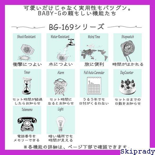 商品紹介 アクティブな女性のためのカジュアルウォッチBaby-Gから、新しいカラーテーマモデル「ピンクゴールドシリーズ」が登場します。今回のベースモデルには丸いフォルムに耐衝撃性を実現するフロントプロテクターを搭載したBG-169を採用。フェイスに光沢を放つピンクゴールドのメタル素材を使用し、質感を向上させると共にアクセサリーのような女性らしさを表現しています。20気圧防水やワールドタイム、ストップウォッチなどの便利な機能も充実。オンでもオフでも着けるシーンを選ばない、Baby-Gの登場です。●耐衝撃構造(ショックレジスト)●20気圧防水機能●番号を最大25件メモリー(名前:8文字、番号部:12桁)●ワールドタイム:世界30都市(29タイムゾーン)の時刻表示、サマータイム設定機能付き●デイカウンター機能:タイトル(8文字)と年月日を5本メモリー、今日から設定日までの日数を表示、「月日」一致報知機能●ストップウオッチ(1/100秒、24時間計、スプリット付き)●タイマー(セット単位:1分、最大セット:24時間、1秒単位で計測)●時刻アラーム5本・時報●フルオートカレンダー●12/24時間制表示切替●操作音ON/OFF切替機能●ELバックライト(残照機能付き)カレンダー機能有文字盤デジタル男女別レディース精度:月差±30秒防水性能日常生活用防水電波受信機能無駆動方式クオーツ ブランド紹介 アクティブに活躍する女性のため、G-SHOCKから生まれたカジュアルレディースウオッチブランド、BABY-G。衝撃や振動に強い耐衝撃構造、水まわりの仕事やウォータースポーツなどでも安心な防水機能(10気圧以上)と可愛いだけじゃなく実用性もバツグンです。