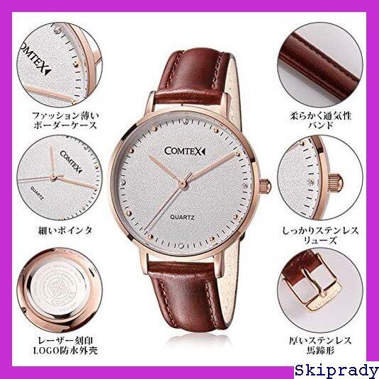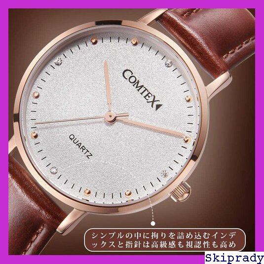tex 腕時計 レディース 赤褐色 レッドブラウン ホワイト 革バンド アナログ表示 日本製クオーツ ウオッチ 女性時計 ピンクゴールド 55