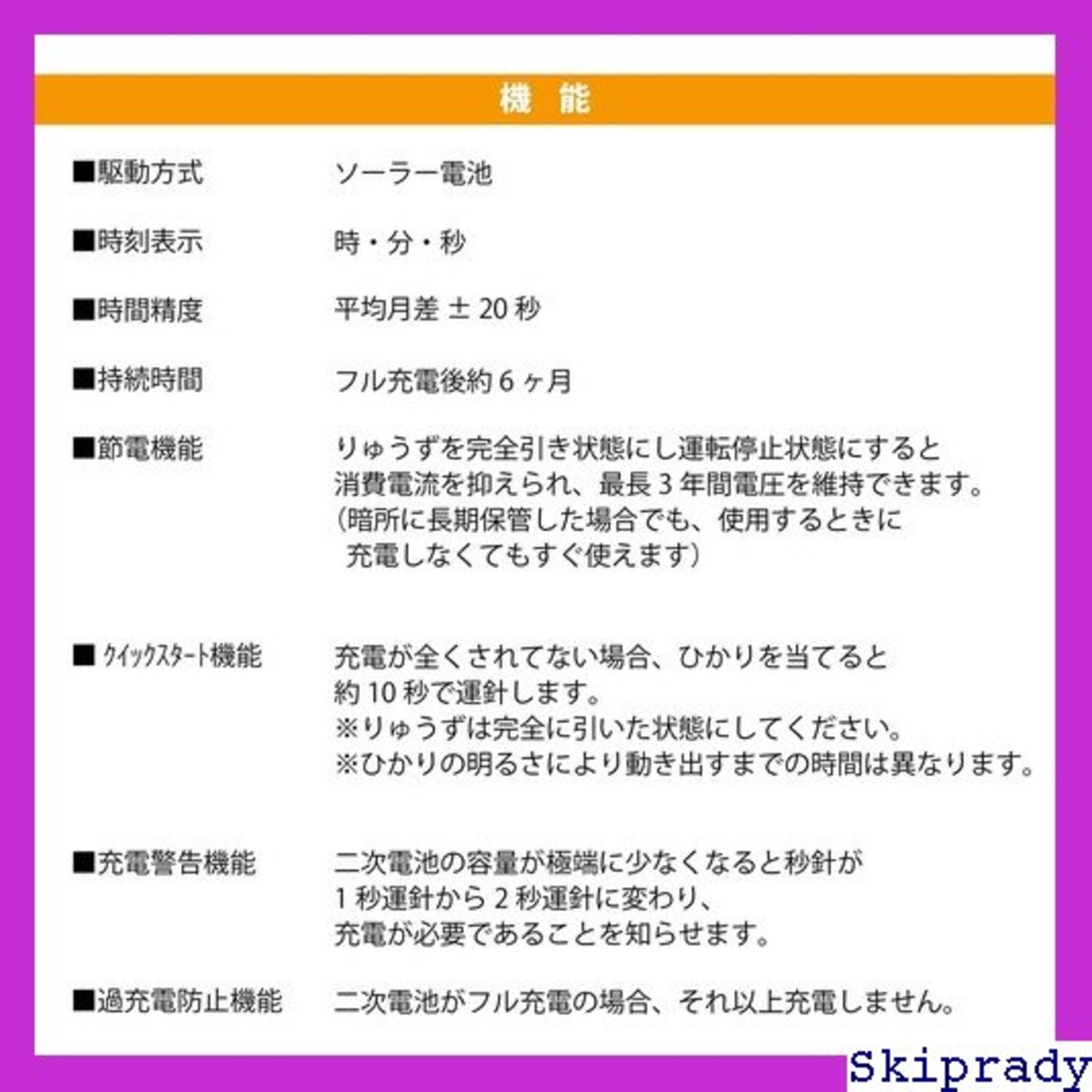 機能:ソーラー電源機能、日付表示、節電機能、クイックスタート機能、充電警告機能、過充電防止機能