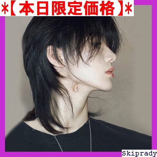BBYMECO ウルフカット ウィッグ 短髪 ゆるふわ 唖光 無造作カール 自然 お洒落 男性 男女兼用 学園祭 撮影用 日常 原宿 自然黒 66