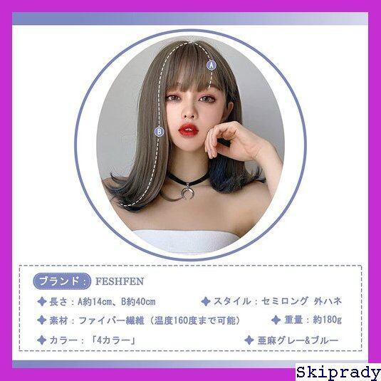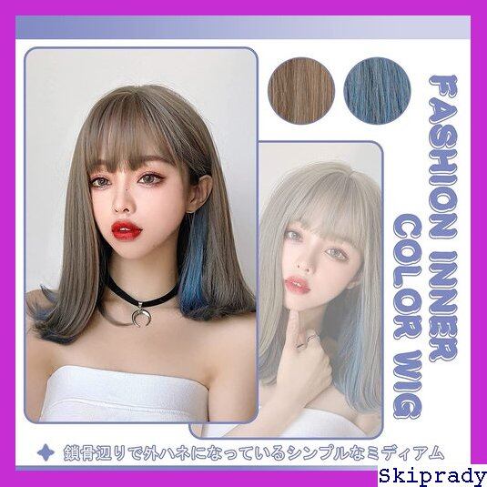 FESHFEN ウィッグ セミロング ミディアム フルウィッグ ロング インナーカラー レディース セミディ うぃっぐ 女装 外向き かつら 女性 wig 外はね カール 日常 自然 小顔効果 ハロウィン 可愛い◆8896 121