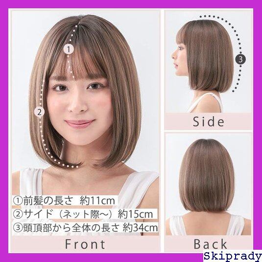 髪の長さ:1.前髪 約11cm 2.サイド 約15cm 3.頭頂部から全体の長さ 約34cm ※いずれも自然長(カールを伸ばさない状態)での計測です。若干の誤差がある場合があります。重量:159g