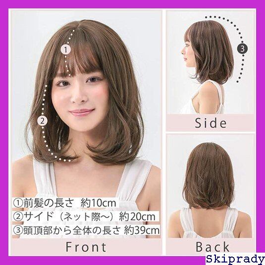 1.前髪 約10㎝ 2.サイド 約20㎝ 3.頭頂部から全体の長さ 約39㎝※いずれも自然長(カールを伸ばさない状態)での計測です。若干の誤差がある場合があります。