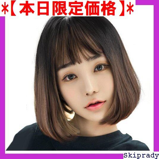 【本日限定価格】 フル ライトブラウン うぃっぐ 襟足 ストレート レディース ウイッグ 普段使い ナチュラルカール 女性 かつら 自然女装 カツラ ミディアム グラデーション 根元黒 dnoymab ショート ボブ ウィッグ 274 | skiprady