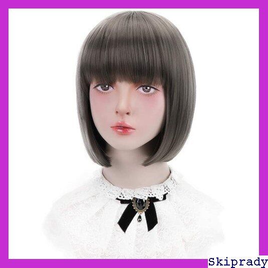 ウィッグ ボブ ショート フルウィッグ レディース 小顔 カツラ ネット付き 耐熱 カラフル 17色選択可 グレー 286