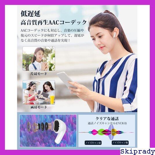 【本日限定価格】 ワイヤレスイヤホン ホワイト WEB会議/テレワーク/通勤/通学/スポーツ/ウォーキング 映賞/Zoom タッチ操作 左右分離型 長時間再生 ワイヤレス充電 cVc8.0通話ノイズキャンセリング コンパクト フィット 軽量 ハンズフリー通話 マイク 自動ペアリング AACコーデック HIFI ブルートゥースイヤフォン 革新のbluetooth5.2+EDR搭載 bluetooth 18 | skiprady