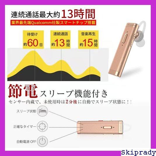 【本日限定価格】 軽薄型 シャンパン Windows対応 android 次世代急速充電スマートチップ搭載、MEMS高感度マイク内蔵Scms-tガラケー、iOS cVcテクノロジー QualmR ミュート/SIRI搭載 ENCノイズ低減技術 デュアルマイク通話設計 HD、SBC・AAC対応 aptX◆ aptX◆& Bluetooth ワイヤレスイヤホン 片耳 日本語音声 Glazata 249 | skiprady
