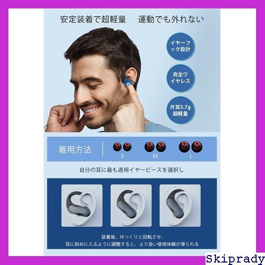 【運動用耳掛イヤホン&フィット感抜群】 ◆◆人間工学に基づいで、耳掛け式が安定した三角装着を構成し、耳にしかっりと固定でき、激しい運動しても落ちない、日常のランニング、ヨガ、ジム、テニス、マラソンなどのスポーツに最適な完全ワイヤレスイヤホンです。◆◆液状シリコンイヤーフックに採用し、片耳5.7g軽量な装着感が耳への負担を最小限に抑えて、長時間の装着で耳が痛くならない。