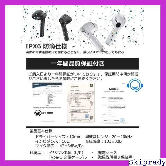 一回の充電で最大6時間以上音楽再生可能、充電ケースで最大3回フル充電可能。合わせて24時間連続使用できます。長時間の外出でも一安心 取扱説明書・書・TypeC充電ケーブル付属・【一年間、安心購入】製造メーカーから出荷される際、全品出荷検査をしております