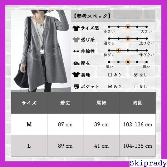 エムエルーセ ゆったり ミドル丈 カーディガン セーター Vネック ジャケット アウター 春 秋 冬 レディース 8
