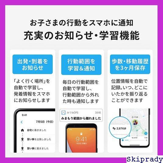 商品の説明 頼もしく成長していくお子さまを、みてねが一緒にみまもります。 ずっとつないできた我が子の手を、少しの間、離す時間が訪れました。 人生において、必要なことだと分かってはいても、ちょっとさみしく、ちょっと心配。 みてねみまもりGPSは、そんな皆さまをやさしくみまもります。 もっと読む みてねみまもりGPS 第2世代の特徴 子どもが携帯しやすい小型のGPS端末 キッズ用ケータイやスマホが持ち込めない場所でも使える、小さくて丈夫なGPS端末。学校、習い事、お出かけにも、いつでもどこでも子どもの居場所を見まもることができます。 ドコモLTE網・GPS衛星・WiFi・基地局を活用した精度の高い位置情報 通信にはドコモLTE網を使用し、世界基準のGPS衛星、日本版GPSみちびき(QZSS)、さらに世界各国の衛生測位システムに加え、衛星の軌道情報を高速補完するA-GPSにも対応。最新モデルはSBASにも対応。GPS信号の誤差を補正・補強することで位置精度を向上させました。また、衛星電波が届かない屋内や地下でも、WiFiを利用して位置情報を取得できるため、位置情報の表示が途切れづらく安定しています。 充電頻度が少ない!2000mAhの長持ちバッテリー 業界最大のバッテリー容量だった第1世代からさらに進化!2000mAhの大容量リチウムイオンを搭載。1回の充電で最大2ヶ月稼働します。※省電力モード利用時、1日2時間の移動で計算しています。 出発・到着を自動でお知らせAI機能搭載! みてねみまもりGPSに搭載されたAI(人工知能)が、学校や習い事など、お子さまの「よく行く場所」を自動で学習します。さらに、学習・登録した場所への出入りを自動で検知してお知らせするので、アプリで常に居場所を確認する必要がありません。通知スポットは無制限に登録いただけます。 もっと読む お子さまの1日の歩数がわかる お子さまのアクティブな様子が確認できるのは、みてねみまもりGPSだけ。その日の歩数や移動履歴は、あとから確認することもできます。1人で行動できる範囲・距離が日に日に増えていく我が子の姿から、日々の成長を実感することができます。移動履歴は3ヶ月分保存されるので過去の位置情報や歩数を見返すことができます。 かわいい4色展開 お子さまがお気に入りの色が選べるのもみてねみまもりGPSだけ。パパママ・お子さまのアンケートから生まれたかわいい4色展開です。 月額料金の支払いも位置情報の確認も専用アプリで一括管理が可能です。月額料金の詳細はカスタマーQ&AもしくはみてねみまもりGPS公式ホームページをご参照ください。業界最安級の月額料金で手軽にご利用いただけ、いつでも解約可能です。 もっと読む みてねみまもりGPS第2世代 みてねみまもりGPS第1世代 発売年 202 202 測位方式 GPS衛星5種・A-GPS・Wi-Fi・SBAS・携帯基地局・加速度センサー GPS衛星5種・A-GPS・Wi-Fi・携帯基地局・加速度センサー バッテリー リチウムイオン2000mAh リチウムイオン1800mAh サイズ 幅48mm×高さ48mm×厚み20mm 幅48mm×高さ48mm×厚み20mm 重さ 54.5g 51g 本体カラー ホワイト・ブルー・ピンク・グリーン ホワイト・ブルー・ピンク・グリーン 歩数計機能 ◆ ◆ 主な製品仕様 商品名 みてねみまもりGPS 第2世代 サイズ 48×48×20[mm] 重さ 54.5[g] バッテリー リチウムイオンポリマー電池 2000mAh 充電頻度 省電力モード(最短3分間隔)で最大2ヶ月、高頻度モード(最短1.5分間隔)で最大1ヶ月 ※いずれも満充電時を想定 通信方式 LTE Cat.M1(ドコモLTE) 測位方式 GNSS( GPS / みちびき QZSS / BeiDou / Galileo / GLONASS ) アシストGPS( A-GPS ) SBAS Wi-Fi 携帯基地局 加速度センサー 耐久性 生活防水 防塵(IP55) 表面仕上げ マット塗装 充電端子 USB Type-C ストラップホルダー あり 付属品 充電ケーブル(USB Type-C) 専用ストラップ ※ACアダプター別売 月額利用料 あり※詳しくはみてねみまもりGPS公式ページをご参照ください 契約期間 1ヶ月毎に更新、いつでも解約可能です。 違約金・事務手数料など ありません。端末本体の代金と業界最安級の月額課金のみでご利用いただけます。