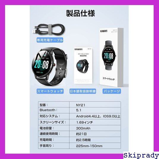 【本日限定価格】 限定ブランド iPhone&Android対応 日本語アプリ 男女兼用 プレゼント 誕生日/敬老の日 長持ちバッテリー SMS/Twitter/Line通知 IP67防水 スポーツウォッチ 目覚まし時計 レディース スマートウォッチ 歩数計 活動量計 ストップウォッチ 腕時計 Bluetooth5.1 1.7インチ大画面 スマートウォッチ Kawayi 7 | skiprady