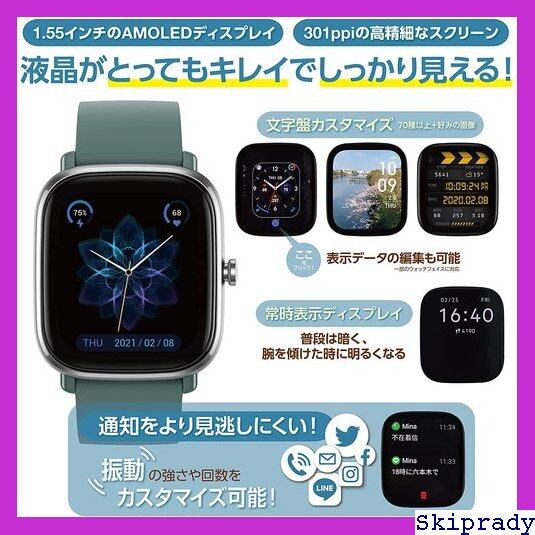 【 Alexa日本語対応】 Alexaを利用して、ニュース速報や各種情報、天気予報をすぐにチェック。スマートウォッチに話しかけるだけで、アラームの設定、スマートホーム機器の操作など、多くの便利な機能を利用できます。【301ppi HD解像度の鮮やかなスクリーン】1.55インチのAMOLEDスクリーンを備えています。スマホにも使われているAMOLEDディスプレイにより豊かなディテール、鮮やかな色合いと読みやすさを実現しました。