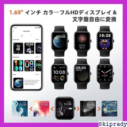 RIVERSONG Motive 3S スマートウォッチ 2022 腕時計 1.69インチディスプレイ 10日間の大容量バッテリー持続 5ATM防水 スポーツウォッチ 多種類スポーツモード レディース メンズ スマートバンド 活動量計 歩数計 目覚まし時計 天気予報 座りすぎ・着信通知 音楽再生 睡眠モニタリング 日本語・iPhone/Android対応 技適認証取得済 ブラック 134