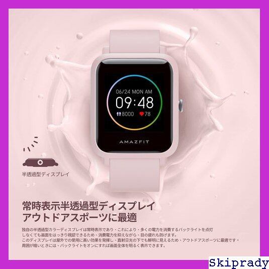 【本日限定価格】 Amazfit ピンク IOS/android 常時点灯 14つスポーツモード 1.28インチ 活動量計 アプリ通知 5ATM 座りすぎ通知 心拍モニタリング 睡眠モニタリング バッテリー寿命 スマートウォッチ Lite S Bip 155 | skiprady