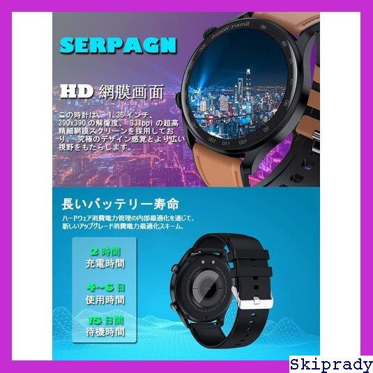【HDカラースクリーン&超薄型設計】スマートウォッチは1.36インチ390X390高解像度大画面フルカラースクリーンを採用され、画質がより鮮明になり。例のない快適な視覚感と優れた操作感をもたらします。厚さ11mm超薄型設計が採用されております。アルミニウム合金中枠で軽くて丈夫です。シリコンバンドに合わせて、柔らかくて肌になじみ、装着がとても快適です。2色のベルト(ブラウン、ブラック)が付属されており