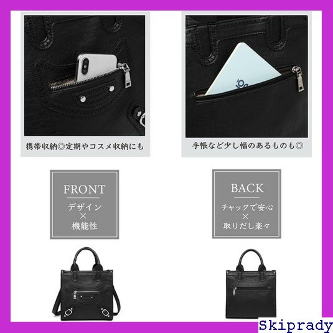 個性派パンチングデザインが様々な洋服との相性抜群!スクエア型の2WAYトート♪①書程よいサイズ感でデイリーに使いやすい。 ②ハイランクのソフトPUレザーを使用。かっちりとしつつも柔らかな質感♪③広めのマチで見た目以上の収納力◎④フロントと後部にファスナーポケット付きで、小物も収納しやすい。