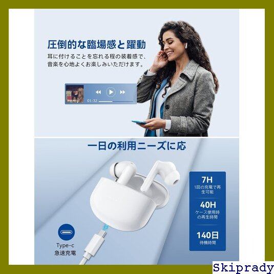 【本日限定価格】 イヤホン 白 日本語取扱説明書付き Type‐C急速充電ケーブル付き WEB会議/テレワーク/通勤通学/ランニング iphone/Android対応 イヤホン IPX7防水 40時間連続再生 片耳/両耳 完全ワイヤレスイヤホン CVC8.0ノイズキャンセリング&AAC対応 タッチ式 自動ペアリング ぶるーとーすイヤホン 5.1 202業界新開発版&Bluetooth Bluetooth ワイヤレスイヤホン 29 | skiprady
