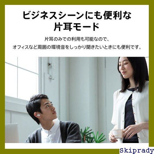 【ビジネスシーンにも便利】スマホとPC、2台のスマホ等、同時に2台の端末と接続できるマルチポイント機能*を搭載。一台を音楽再生用、もう一台を待受用にすることもできるので、音楽再生中も別端末からかかってきた着信を逃すことはありません。また、片耳のみでの利用も可能なので、環境音をしっかり聞きたいときに便利です。