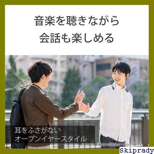 耳をふさがないオープンイヤースタイルだから、音楽を聴きながら、会話も楽しめる。日常に音楽が溶け込む体験をワイヤレスで。コンパクトで耳にフィットするデザイン。軽量、耳を塞がない、耳に入れ込まない構造のため、ワイヤレスで一日中身につけていられる快適性を実現ソニー独自の音導管設計により、耳をふさがない構造ながら、音導管を通して鼓膜の方向にダイレクトに音を届けることで、周囲の音とプレーヤーからの音(音楽など)がブレンドされる新しいリスニング体験を提供。耳をふさがない構造でありながら、音漏れも低減できるように工夫。Bluetooth対応。オープンイヤースタイルをワイヤレスで手軽に 特長説明 ワイヤレスなのでケーブルのわずらわしさから解放。NFC対応のため接続設定も簡単1回充電すると、7.5時間の連続音楽再生が可能。ずっと身に着けて音楽を流していても、長時間の外出でも安心して使えます。本体は25.5gと軽量なので、ずっと首にかけていても疲れません。また、ネックバンドは柔らかいので小さく折りたたみが可能。より多くの耳の形にフィットする、下掛けスタイルを採用。装着時に正面から目立ちにくく、耳への負荷を感じづらい形状です。メガネとの干渉が少ないという利点も。ボイスアシスタントやハンズフリー通話に対応。リモコンにマイク、ボリューム、マルチファンクションキーを搭載
