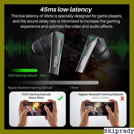 【本日限定価格】 TOZO 黑 ブリージングライトと45ms超低遅延のゲーム専用設計 ゲーム/音楽モード インイヤーヘッドセット 高感度 マイク付き ゲーミングヘッドフォン Bluetooth ワイヤレスイヤホン G1 196 | skiprady