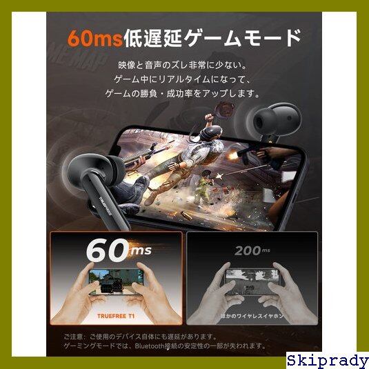 ワイヤレスイヤホン Truefree T1 ENC通話ノイズリダクション 高音質 イヤホン Bluetooth 低遅延ゲームモード搭載 デュアルマイク付き ワイヤレス イヤホン 両耳/片耳対応 瞬時接続 IPX5防水 Bluetooth イヤホン Zoom ミーティング テレワーク/WEB会議用 カナル型 イヤホンType-C充電 重低音 長時間連続再生 AppleとAndroidデバイスに対応 無線イヤホン ブルートゥース ヘッドホン ブラック 258